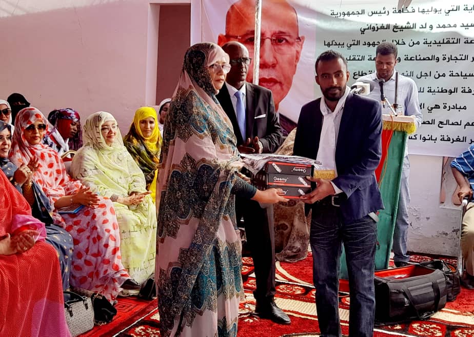 أشرف وزير التجارة والصناعة والصناعة التقليدية والسياحة لمرابط ولد بناهي اليوم الاثنين بمقر الغرفة الوطنية للصناعة التقليدية في انواكشوط على حفل بمناسبة تقديم دعم من الغرفة لصالح الصناع التقليديين والحرفيين المهنيين.