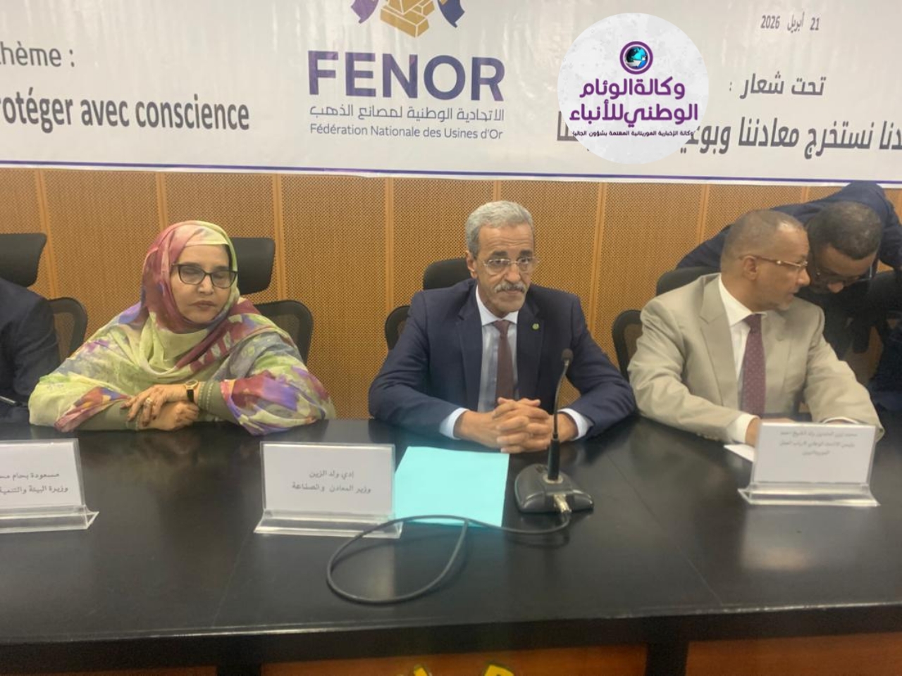 وشهدت الجلسة الافتتاحية حضور وزير المعادن والصناعة ادي ولد الزين، ووزيرة البيئة مسعودة بحام، ورئيس الاتحاد الوطني لأرباب العمل الموريتانيين محمد زين العابدين ولد الشيخ أحمد، إلى جانب رئيس اتحادية مصانع الذهب سيدي محمد كاعم، والمدير العام للوكالة الوطنية “معادن موريتانيا”، ورئيس لجنة الإشراف لفظل ولد بتاح.