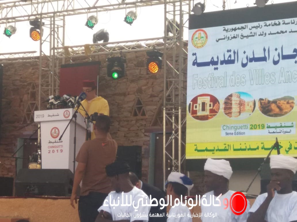 وعقب النشيد ألقى عمدة شنقيط محمد ولد اعماره كلمة رحب فيها بالحضور، وأشاد بالعناية التي يوليها الرئيس للثقافة وتثمين دور المدن القديمة.